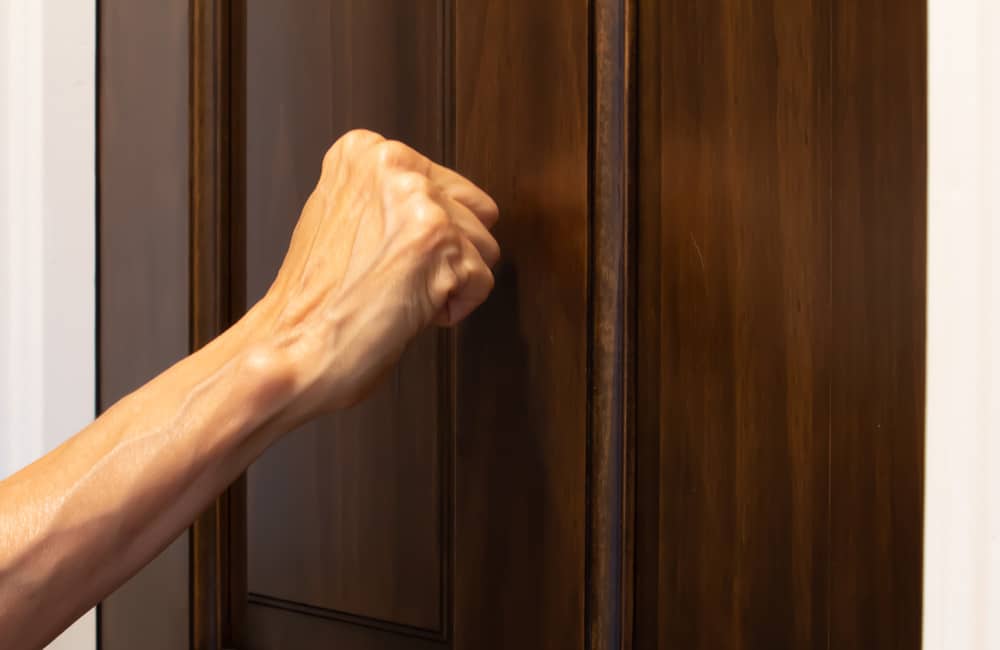 No answer. Amber knocked hard. Still nothing. Steven hit the bell again, longer this time. Finally, after a tense silence, they heard footsteps. The door swung open with a creak. Their neighbor stood there, eyes squinting, face scowling. “What now?” he grunted, rubbing his temple like they’d woken him up.