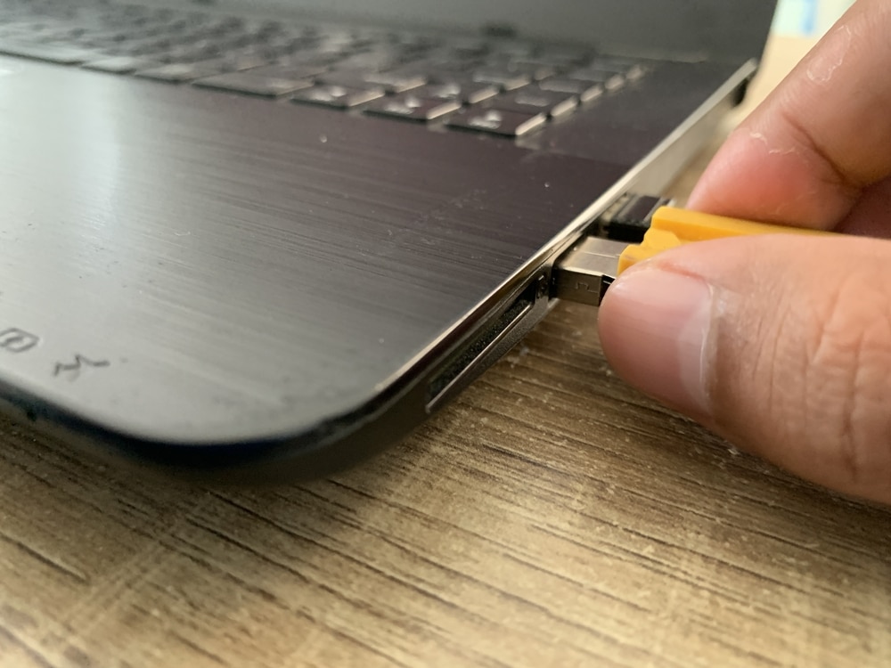 Tyler retrieved the dusty laptop from the closet and placed it on the table. Before inserting the drive, he disconnected the computer from the internet.