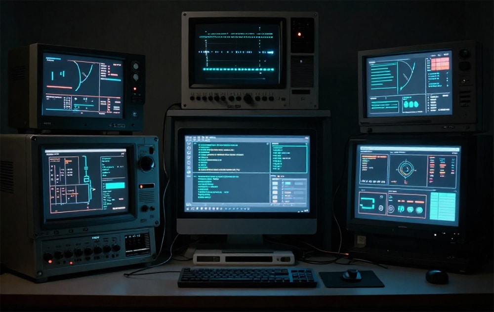 Mark pushed the hatch open carefully and stepped into a dimly lit room filled with unfamiliar equipment and blinking monitors.