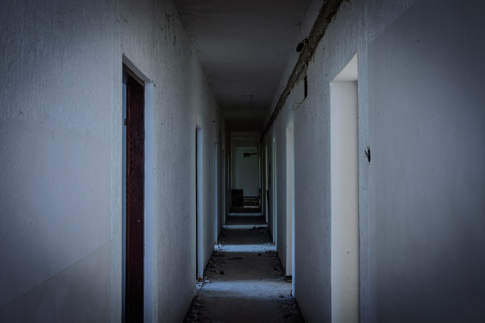 Upstairs, the hallway was narrow and dim. Doors stood slightly ajar, revealing empty bedrooms with sun-faded carpet and moth-eaten curtains.