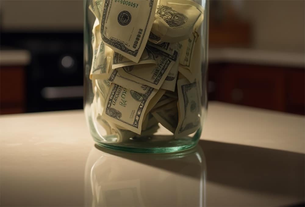 Samantha carried the jar inside and set it on the kitchen counter. It looked even stranger under the light. Crisp bills pressed against the glass, tight and perfect.