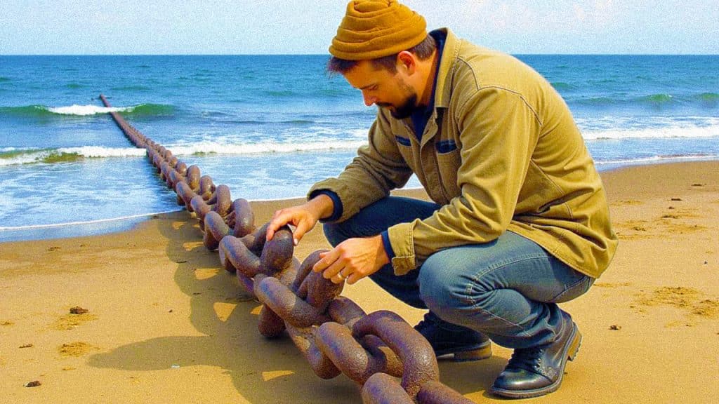When this fisherman spotted something strange on the rocky shoreline, he never imagined it would cause such a scene. Half-buried in the pebbles was a massive, rusted chain snaking straight into the ocean. Curiosity got the better of him, so he anchored his boat and went to investigate. But the moment he began to tug on it, the locals watching nearby started shouting — begging him to stop before it was too late.