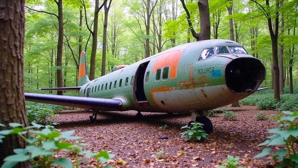 When two hikers ignored local warnings and ventured into the forest, they never expected what they’d uncover. Hidden behind a dense wall of trees stood a strange, massive plane with its wings driven into the ground. After hesitation, they stepped inside — where they finally discovered who had left it behind.