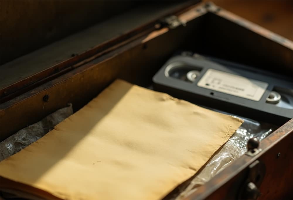 An uncle opened the container, and attention focused as the lid lifted slowly. Inside were no coins or valuables, only a folded letter and a videotape in a sleeve.