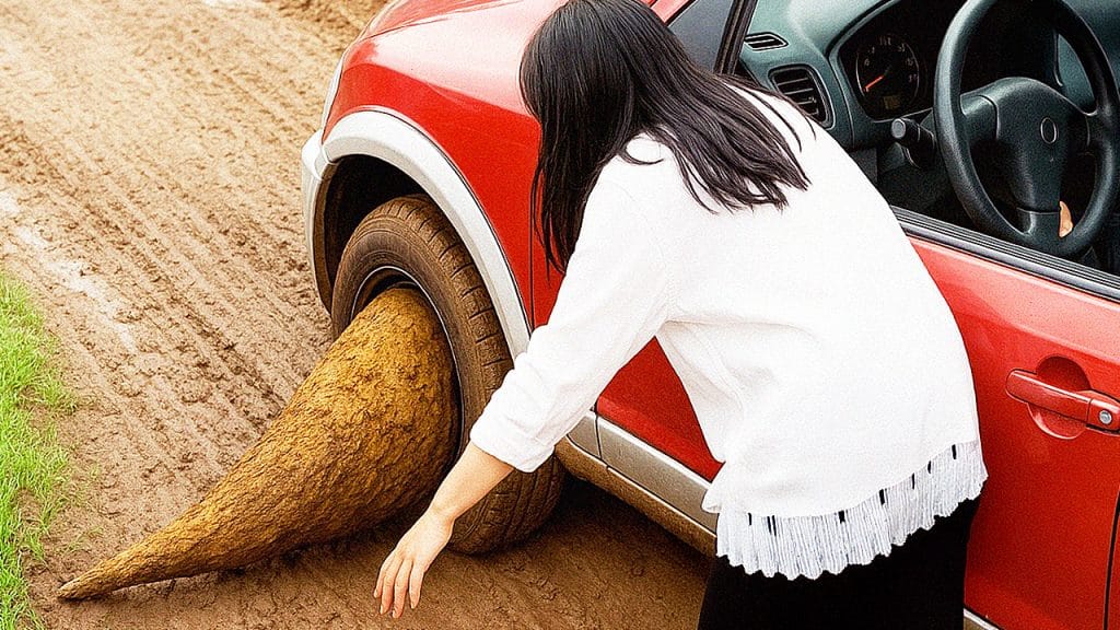 Frau dachte, sie hätte eine Reifenpanne, bis sie sah, was in ihr steckte