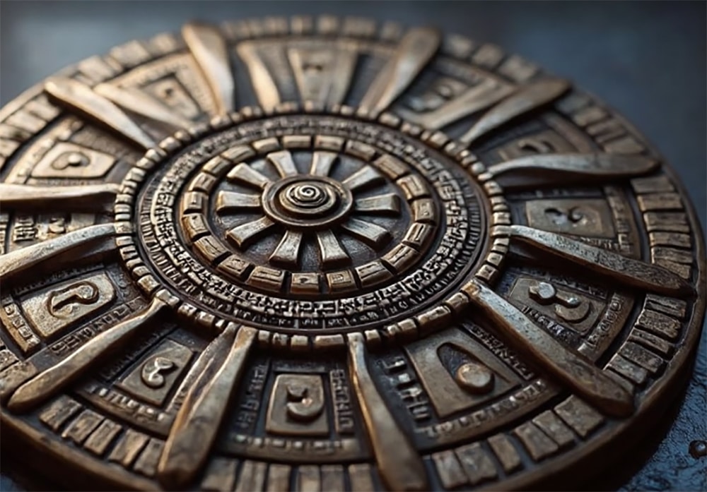 As he unwrapped the old fabric, it crumbled in his hands. Inside was a large bronze disc, tarnished but solid, and clearly very old.