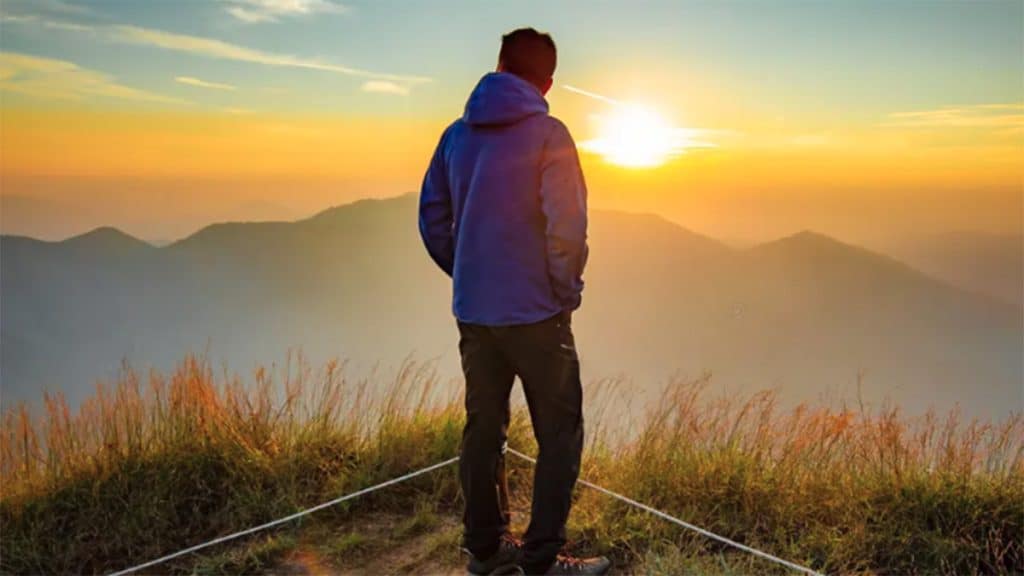 And when he turned around, Bob could see the ponds about 300 feet below him on the hill. He just climbed high up into the ceiling of the forest.