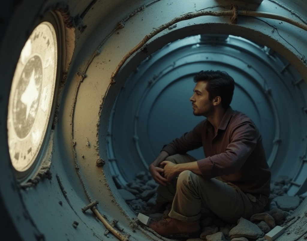 Taking a deep breath, Mark pushed his body into the pod. The interior was cramped, but he managed to fit himself inside.