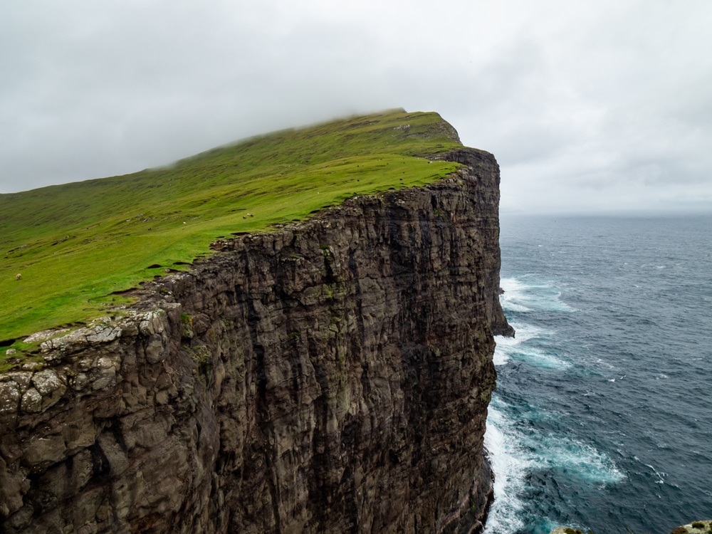 What came into view looked like the edge of an island, with steep cliffs rising from the ocean. Grass covered the top, and the land curved out in both directions.