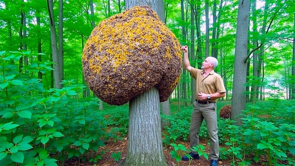 When this local resident was doing landscaping work in his forest-like garden, he was suddenly stopped in his tracks. There was a strange, bulbous mass stuck right to the side of a tall tree at the far edge of his property. At first, he thought it was a beehive. But then experts told him what it really was…