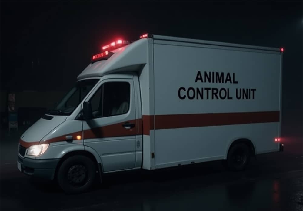 Soon enough, another vehicle arrived—a large white van with “Animal Control Unit” painted on the side. Two officers stepped out, one with a clipboard, the other with a long pole and net.