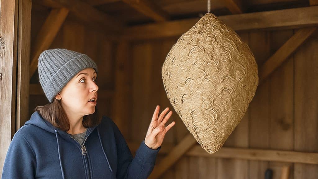 When this woman entered her shed, she found something that made the hairs on the back of her neck stand up instantly. Hanging on the back beam of the building, she saw a giant nest-like object dangling downward.