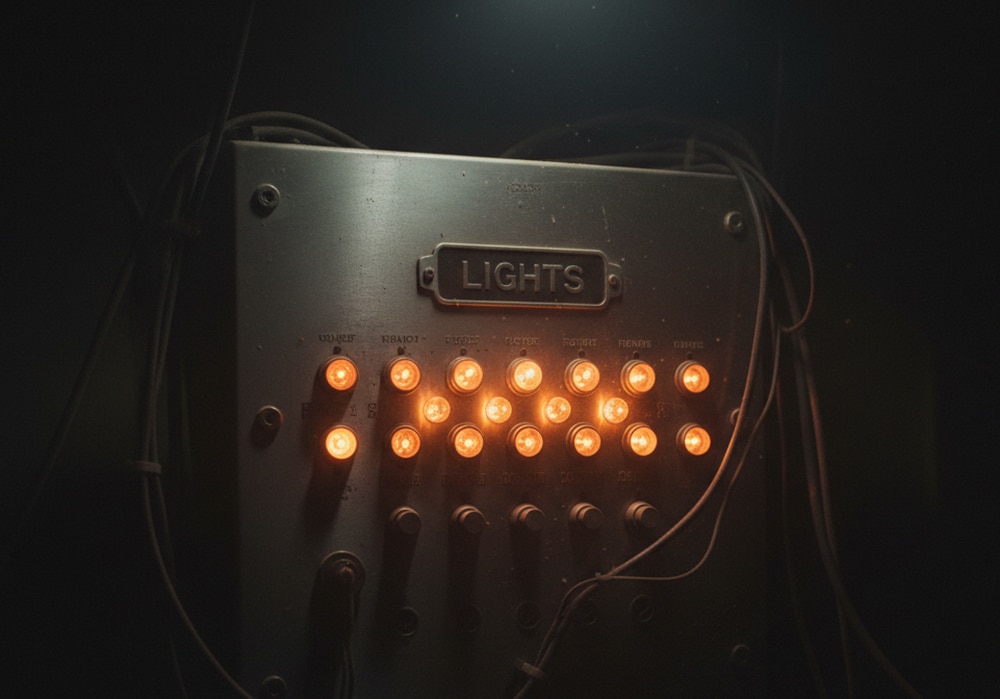 Underneath was a large machine with wires, batteries, and a panel of blinking bulbs. There were more warning labels, but one word that sparked some hope: “lights.”