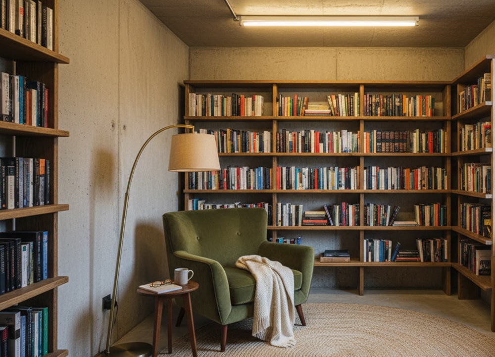 Wandering further, Eli discovered a little study tucked behind a sliding door. Shelves filled with books lined the walls, and a plush armchair sat in the corner next to a reading lamp.