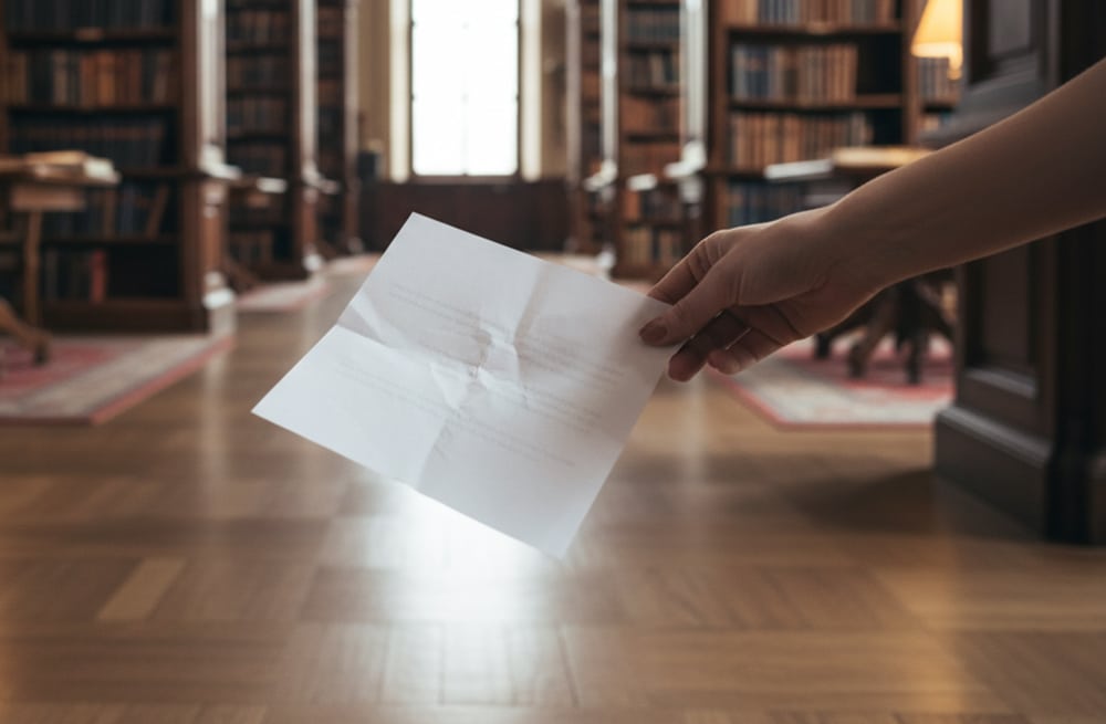 It was a single sheet of paper, half hidden under a floating cabinet. Laura bent down to pick it up, her hands trembling a little.