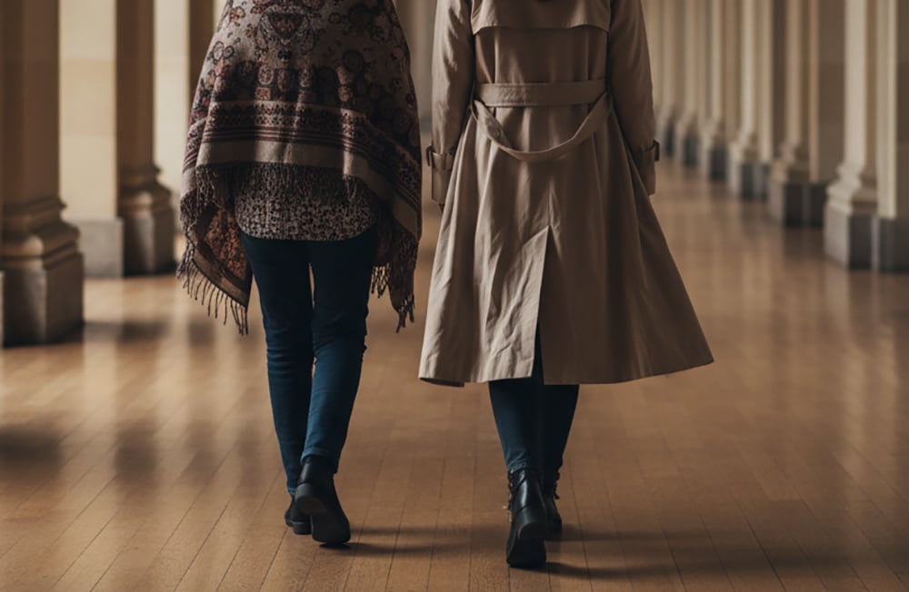 The two women walked briskly down the hallway, trying to stay calm as they passed the front desk. Nobody questioned them further.