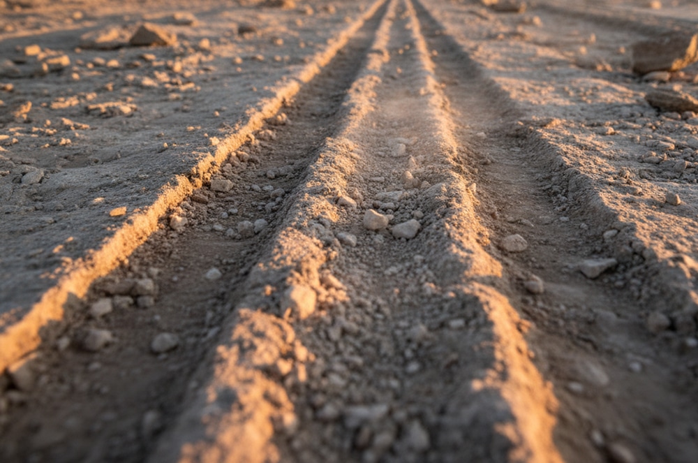 Die beiden umkreisten das Gebäude und hielten Ausschau nach einem Lebenszeichen. Als sie sich zur Seite bewegten, bemerkte Andrew, dass es neben dem Fußabdruck noch andere Spuren im Boden gab.