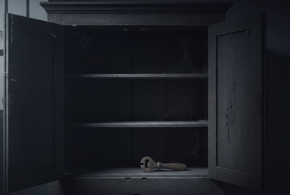 Andrew opened a cupboard, expecting to find more food, but it was empty except for an old can opener.