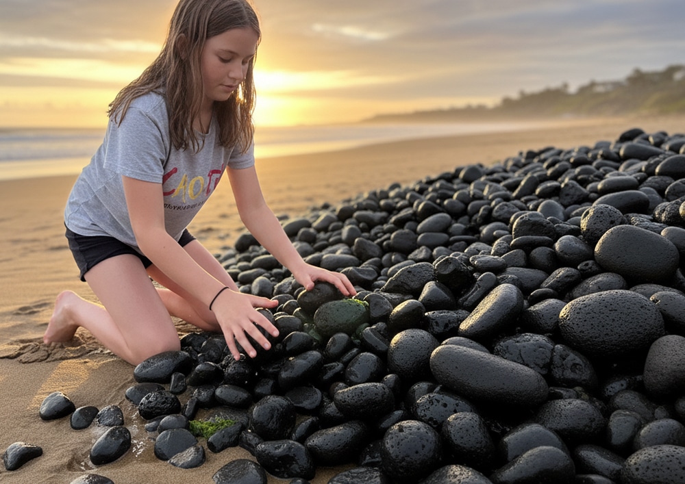 June’s curiosity got the better of her and she knelt down, running her hands through the pile. “What are they?” she asked, eyes wide. The seagulls kept coming back, screeching and diving at the edges.