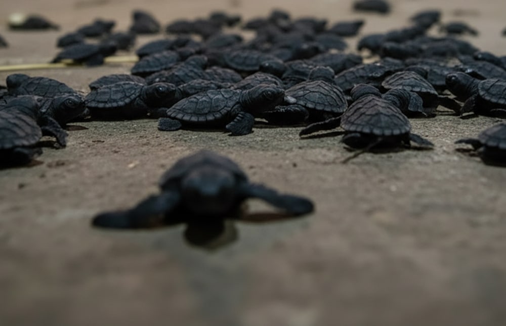 Linda counted quickly, her voice trembling with awe. “This is unbelievable, there are over a thousand turtles here. Nothing like this ever happens.”