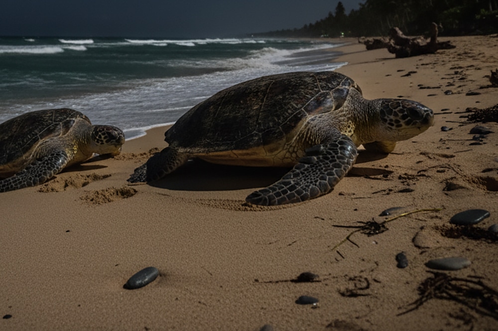 Shapes began to appear at the water’s edge—large, dark figures slowly moving up the sand. As the moonlight caught their shells, the family realized what they were seeing: grown turtles, more than a hundred, had returned.