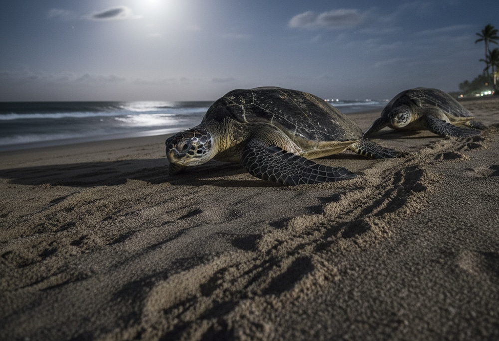 Sophie, Brian, June, and Linda watched as the adult turtles paused just outside, filling the night with their presence. The moment felt both peaceful and wild at once.