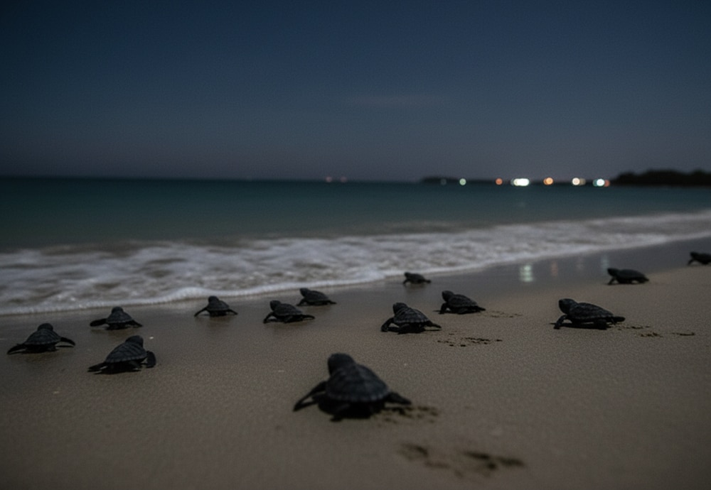 The ground churned with life as the tiny turtles crossed the beach, sticking close to the adults. Linda snapped a few last photos, trying to capture every detail.