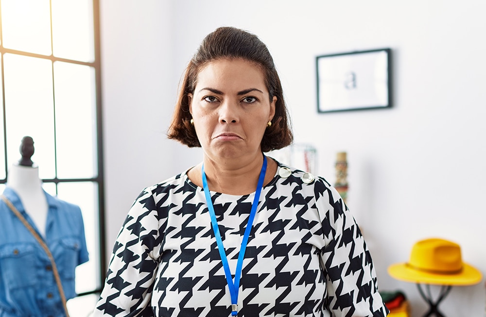 “Uhm… Yes, I’m the only one who’s ever worn it.” The clerk didn’t look convinced. She leaned in closer, squinting as she searched the fabric again, making a soft, frustrated noise under her breath.