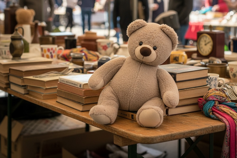Together, husband and wife approached the elderly man’s table and gently set the teddy bear down in front of him. The vendor looked at it, then at them, his eyes kind but watchful.
