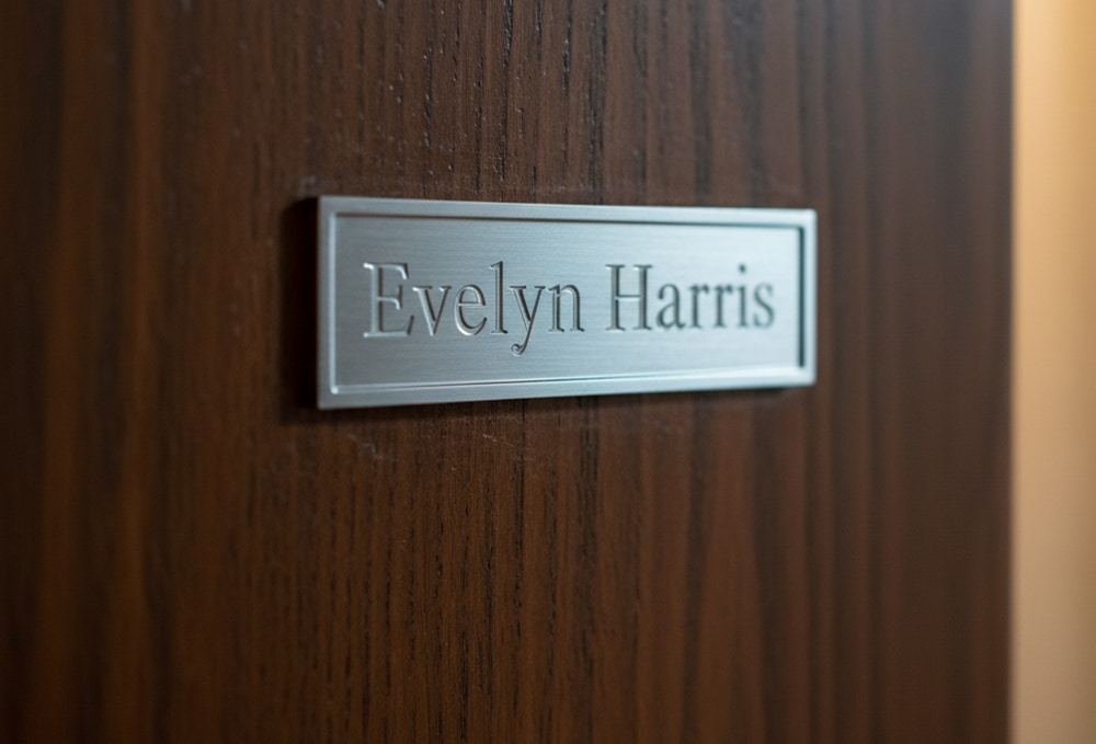 They stopped at a door near the end of the hallway. A small plaque read “Evelyn Harris” in neat silver letters. Claire turned to Paul and smiled gently.