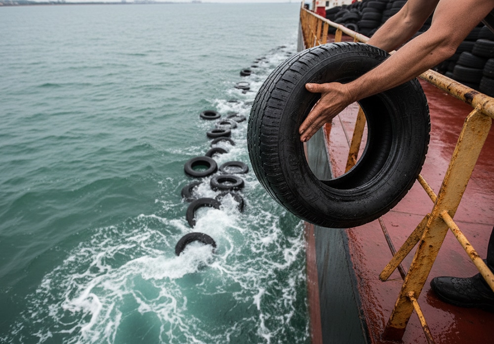 And he’s not hiding it either.” The fisherman pointed toward the water. “If you look closely, you can see floating rubber everywhere.”