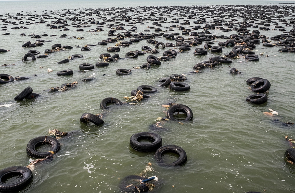 It wasn’t long before evidence of this strange tire disposal became pretty hard to ignore. The waters, which seemed clean enough near shore, suddenly became filled with rubber tires.