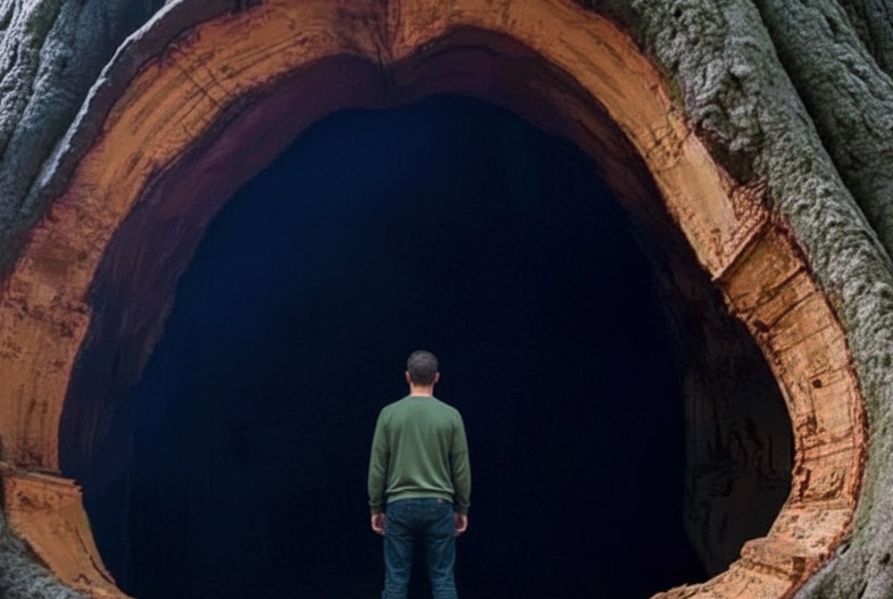The echo returned softly to Evan’s ear. But it also moved deeper into the tree. It was as if the sound of his voice split halfway down its route into the hollow space.