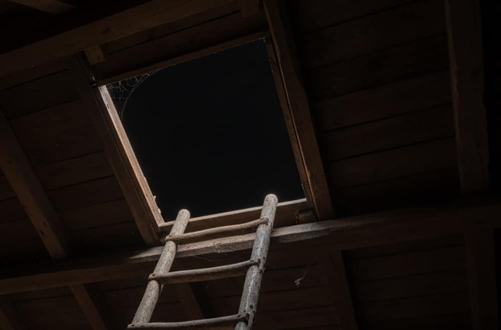 At last, Evan reached the top of the ladder. He found himself at the edge of a third floor, which was smaller and darker than the spaces below.