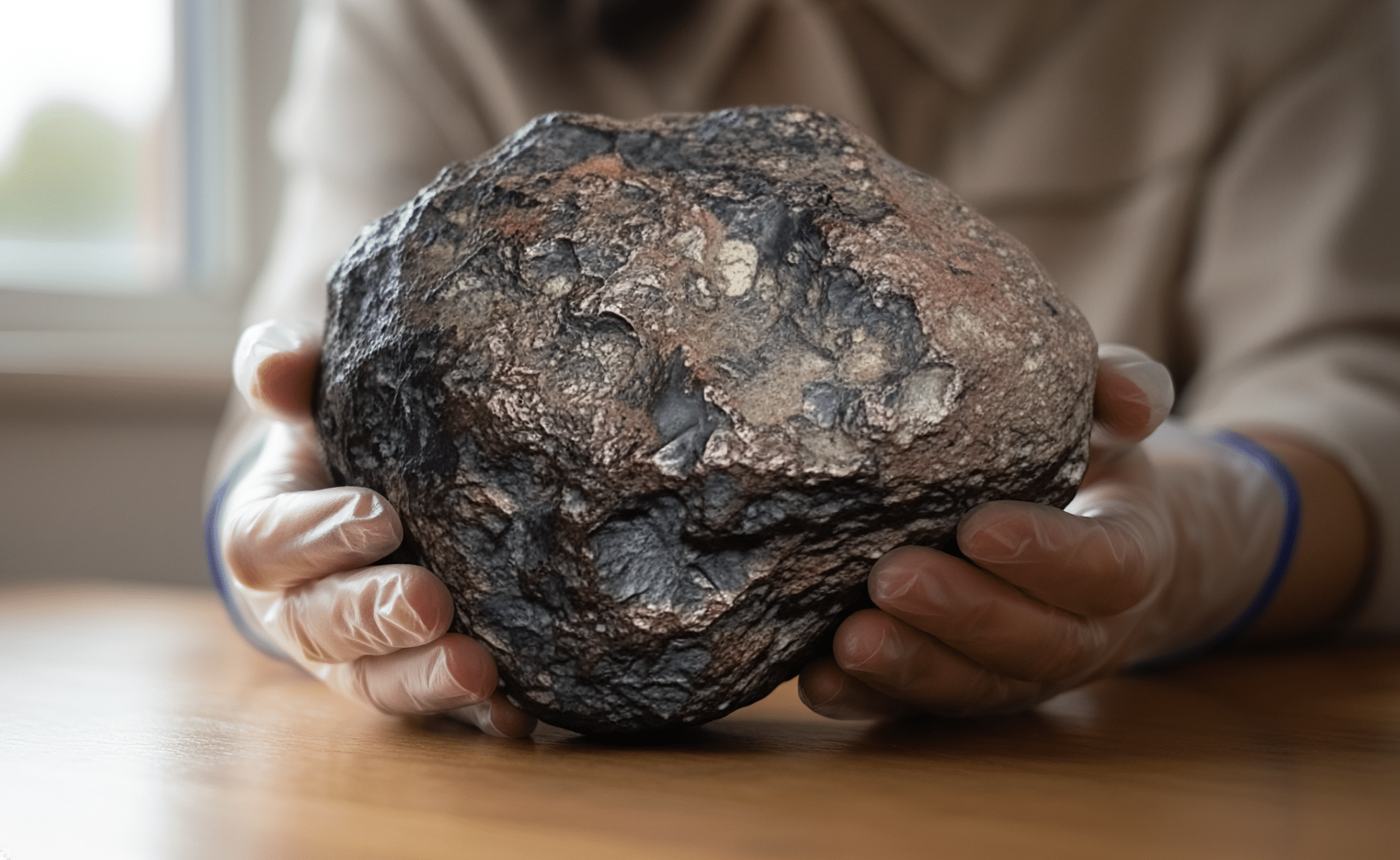 Her expression changed instantly, sharpening with recognition. “It’s not a rock,” she said right away, shaking her head. “Not volcanic, and it isn’t slag either.”