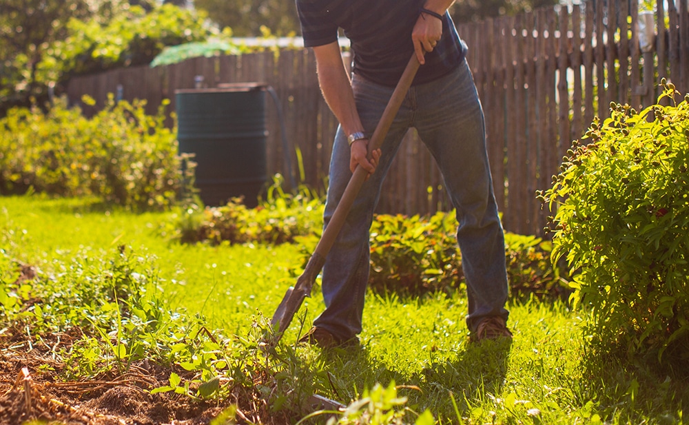 Sam pushed his spade into the centre of the grass bed, where the first tree needed to be planted.