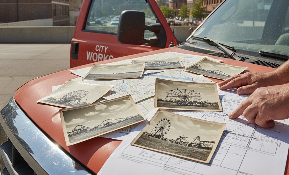 The photos showed empty fields and carnival rides, hinting at the land’s strange past. Finally, the planner promised to explain everything as soon as he had pieced the story together.