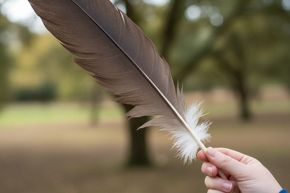 Hannah said nothing at first, her brow furrowed as she inspected the feather one last time. Without a word, she stepped away from the table and moved toward the back of the garden, pulling out her phone.