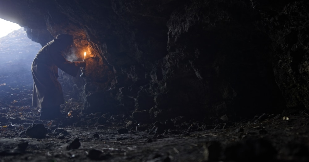 After a tense silence, the man finally lowered his pickaxe. “Alright then. If you’re so curious, come with me.” He led them through a tight corridor into another chamber, his lantern lighting the way.