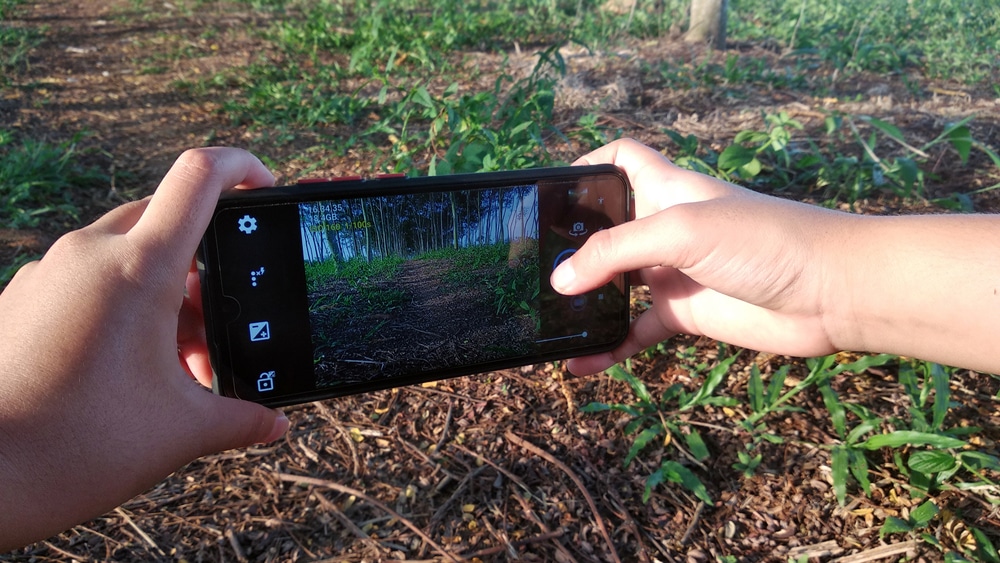 Ethan examined the area around the gate and found more footprints, along with a torn piece of fabric caught on the wire. Ethan took a picture of the prints and the fabric.