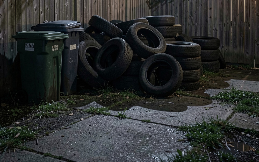 He moved from cover to cover—behind a stack of tires, along a row of trash bins, then ducking under the shelter of a rusted car shell.