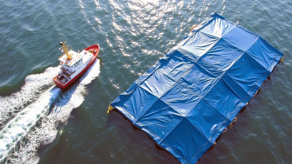 A giant blue tarp, unnaturally square, floating out past the shipping lanes. No one could tell what it covered, only that it seemed out of place.