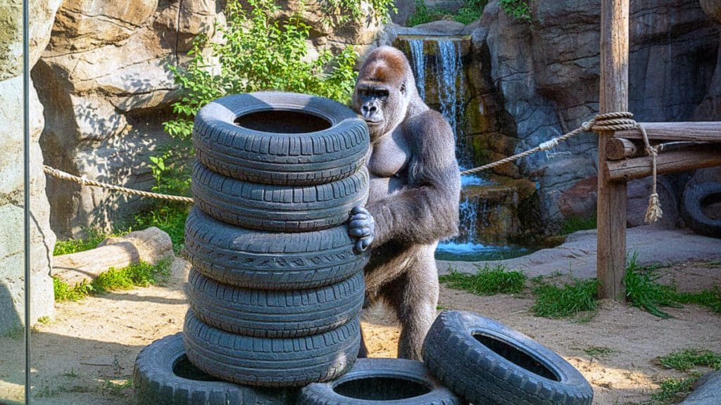 Every morning, before the zoo gates even opened, Boba the silverback gorilla was already hard at work. The keepers arriving for their shifts would spot him in the middle of his enclosure, dragging thick, black tires across the grass.