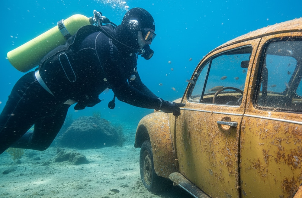 But what these three divers did not know was that this car was indeed parked here for a reason. Locked tight and planted for one singular purpose.