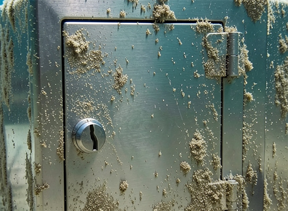 Cody’s hand brushed away sand and some smaller rocks until he finally saw what shone up at them. It was a lockbox made out of stainless steel.