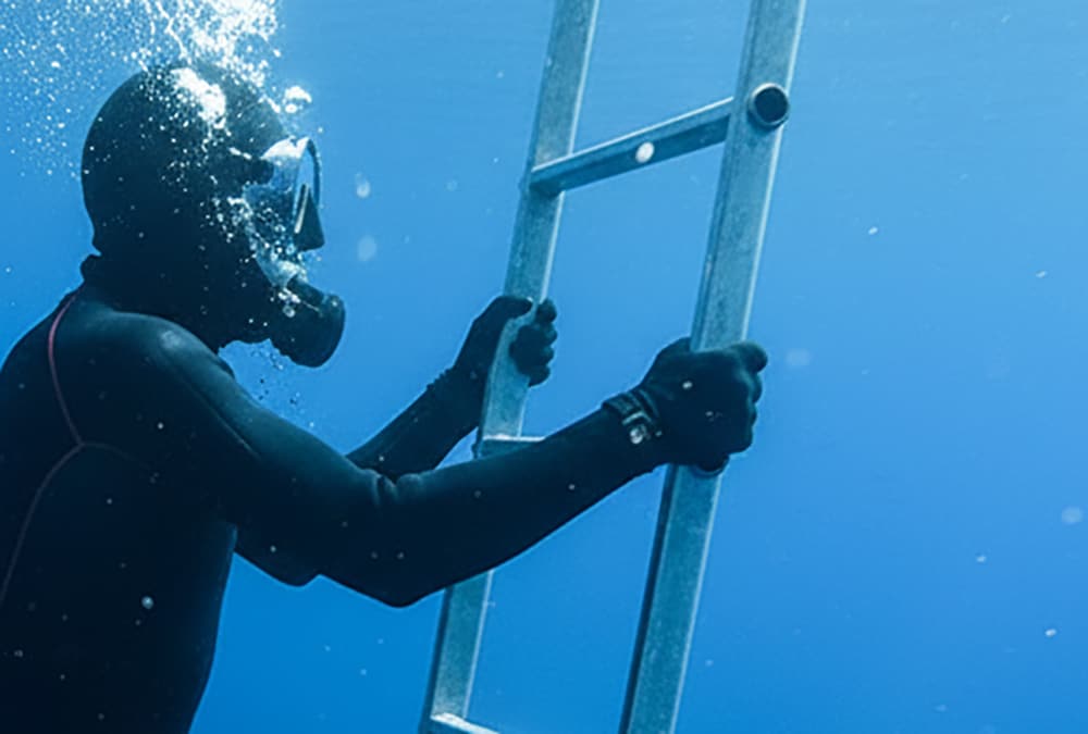 At the end of this tunnel, he found himself breaking through the water’s surface inside a small air pocket, maybe two square meters wide, under the ocean floor itself.