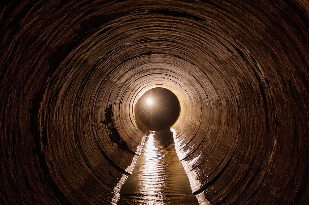 It led into another tunnel, barely lit by their flashlights. They stumbled in and slammed the door behind them, hearts pounding.
