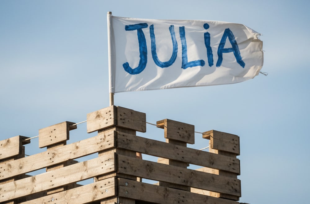 When it was finished, Daniel climbed the steps to the highest turret and unfurled a flag—a simple white banner with Julia’s name painted in blue letters.