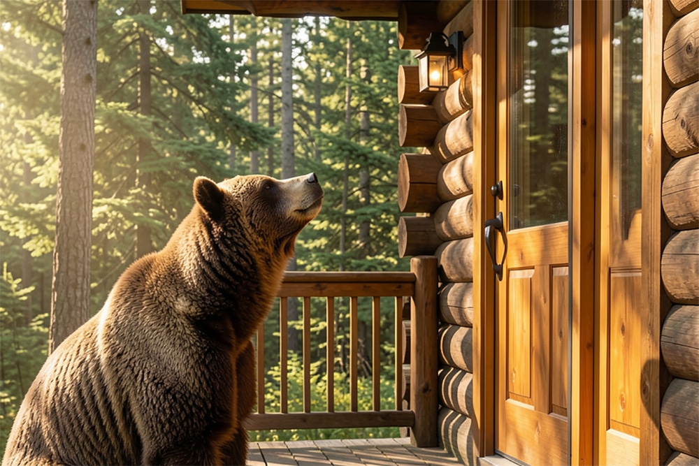 The bear flinched and simply stepped back, sitting on its haunches near the doormat, looking up at the house as though it was hoping for a different reaction.
