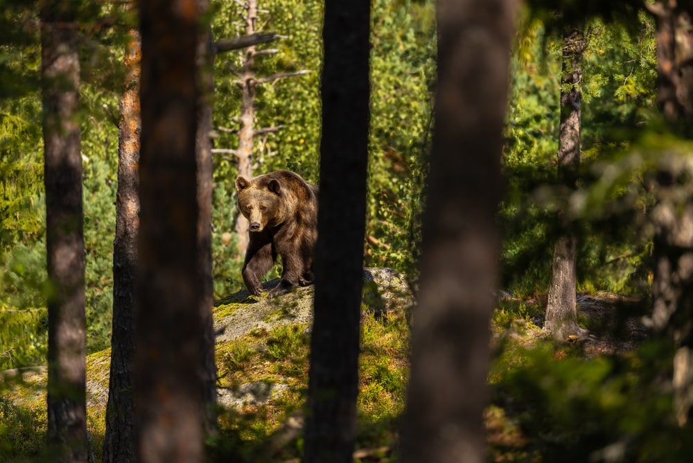 This odd standoff lasted several minutes before the bear finally lumbered off into the trees. Emma kept a watchful eye until she was sure it was gone.